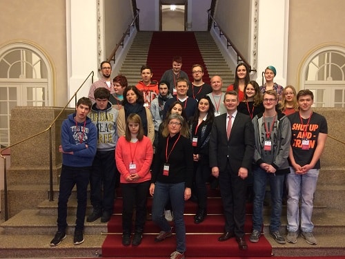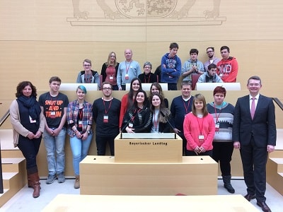 Wir stimmten natürlich sofort zu und so fuhren wir am Montag, den 06.02.17, mit Bussen nach Lochhausen und von dort weiter mit öffentlichen Verkehrsmitteln zum Bayerischen Landtag. Dort angekommen wurden wir auch sofort von Peter Tomaschko, Abgeordneter des Bayerischen Landtages (CSU), begrüßt und herzlich willkommen geheißen. Anschließend mussten wir erstmal ein paar Bilder schießen, so einen Abgeordneten trifft man ja nicht alle Tage. 😉